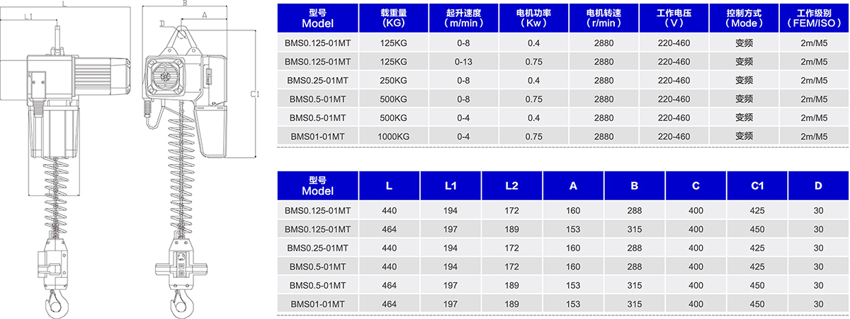 BMS系列欧式环链电动葫芦具有高性能、高安全性可靠性的优点,采用人性化的设计理念,更换快速方便,减少不必要的维护工作,坚固耐用,运行平稳,手电门握感舒适。非常适合配套KBK组合式起重机,悬臂吊等轻小型起重设备,是提高劳动效率,改善劳动条件必备机械的不二选择。